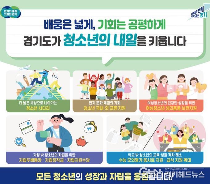 경기헤드뉴스 성미연 기자 | 경기도가 청소년의 건강한 성장과 배움 기회, 생활 안정을 위해 급식, 학습·진로·자립 지원까지 아우르는 다양한 정책을 추진한다.