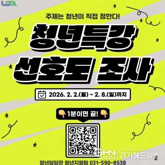 경기헤드뉴스 권민성 기자 | 남양주시는 2일부터 8일까지 ‘2026년 청년특강’ 운영을 위한 사전 선호도 조사를 실시한다고 밝혔다.