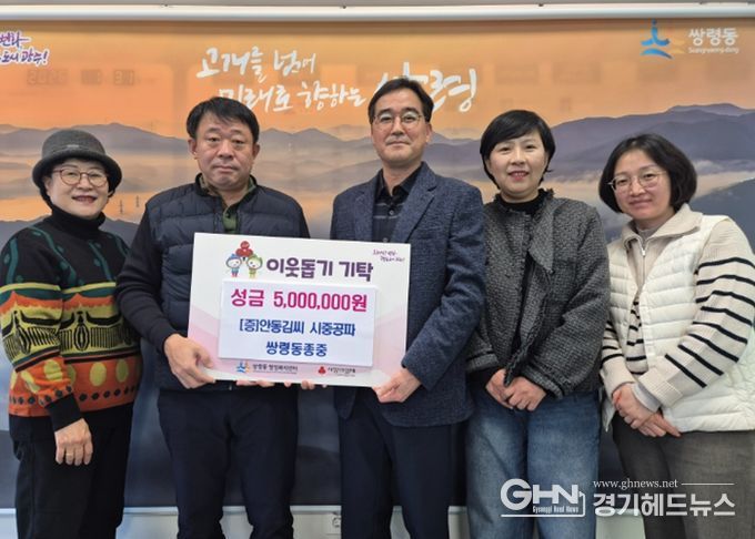 김형옥·장영수 쌍령동 지역사회보장협의체 공동위원장은 “지역사회를 위해 앞장서 주신 안동김씨 시중공파 쌍령동 종중에 감사드린다”며 “기탁해 주신 소중한 마음이 이웃들에게 온전히 전달될 수 있도록 정성을 다하겠다”고 밝혔다.