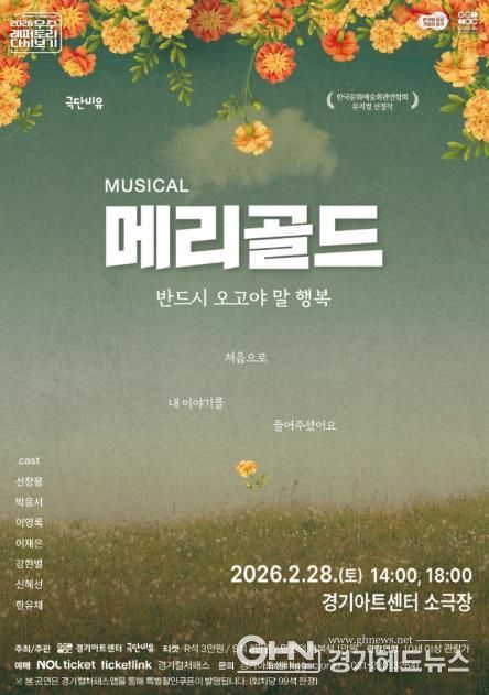 또, 경기아트센터 소극장에서 공연하는 뮤지컬 ‘메리골드’ 관람 할인 문화소비쿠폰이 지원된다. 공연은 오는 28일 토요일 오후 2시와 6시 총 2회 진행되며, 좌석 등급은 R석(3만 원), S석(2만 원), 만원의 행복석(1만 원)으로 구성된다.