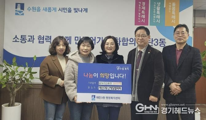 경기헤드뉴스 권준형 기자 | 수원시 영통구 매탄3동은 지난 3일 매탄3동 단체장협의회가 다가오는 설 명절을 맞아 관내 어려운 이웃들을 위해 누리상품권 300장(총 300만원 상당)을 기부했다고 밝혔다.