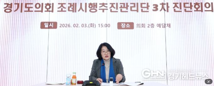 경기헤드뉴스 성미연 기자 | ‘경기도의회 조례시행추진관리단’ 공동단장을 맡고 있는 경기도의회 교육기획위원회 신미숙 의원(더불어민주당, 화성4)은 3일(화), 경기도의회 예담채에서 열린 조례시행추진관리단 제3차 진단회의에 참석하여 회의를 주재했다.