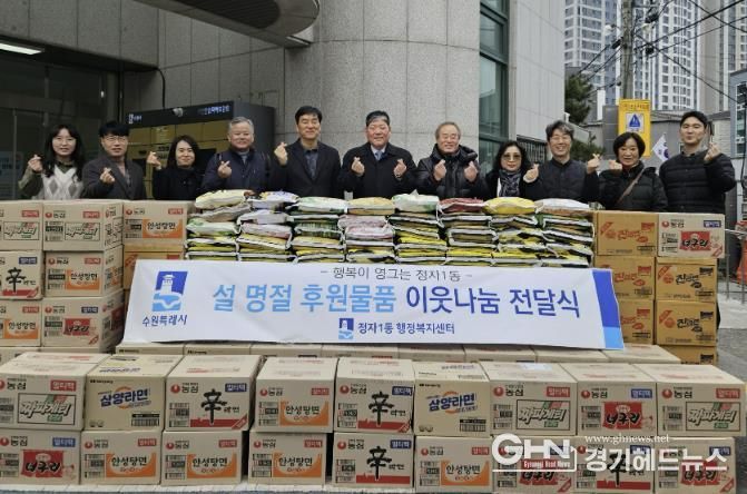 경기헤드뉴스 권준형 기자 | 정자1동 행정복지센터는 2월 4일 설 명절을 앞두고 관내 단체, 기업, 개인 등에서 기탁한 성금과 물품을 어려운 이웃들에게 전달하는 ‘설 명절 이웃사랑 나눔 전달식’을 개최했다.