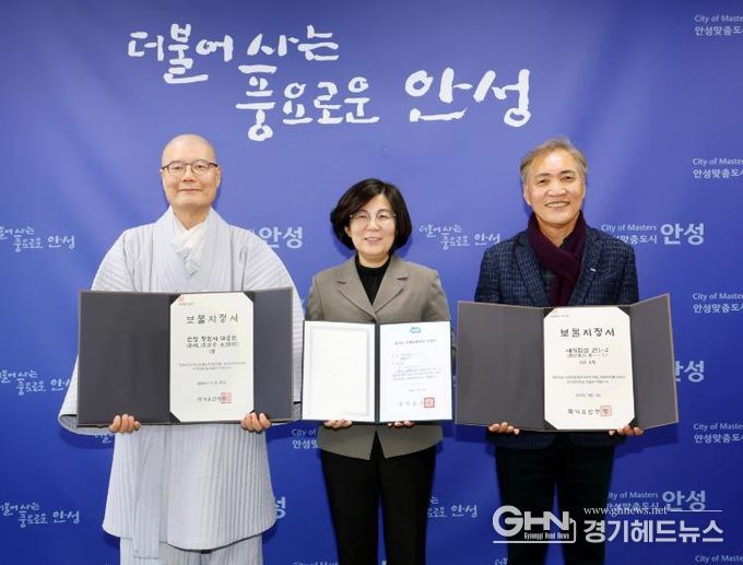 경기헤드뉴스 이현규 기자 | 안성시는 2026년 2월 5일 오후 4시 30분 안성시청에서 '안성 청원사 대웅전'과'예기집설'의 ‘보물’ 지정 그리고 '경책신공문'의 ‘도유형문화유산’ 지정에 따른 증서를 소유자 및 소유단체에게 전달하는 수여식을 개최했다.