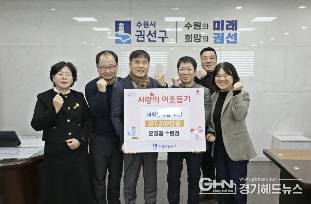 경기헤드뉴스 권준형 기자 | 수원시 권선구는 지난 9일 훈장골 수원점(대표 이정관)이 후원하는 ‘대학입학예정자 등록금’ 전달식을 가졌다.