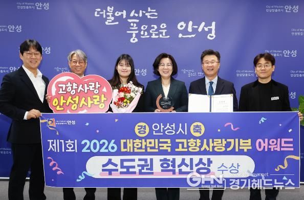 경기헤드뉴스 이현규 기자 | 안성시는 지난 2월 9일 한국프레스센터에서 열린 제1회 '2026 고향사랑기부제 어워드'에서 ‘수도권 혁신상’을 수상하며, 고향사랑기부제 운영 성과를 대외적으로 인정받았다고 밝혔다.