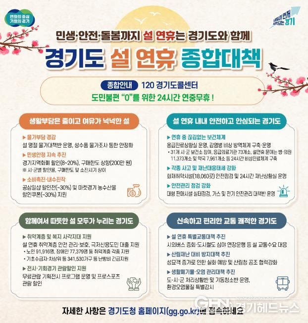 경기헤드뉴스 성미연 기자 | 경기도가 도민들이 따뜻하고 편안한 명절을 보낼 수 있도록 ‘설 연휴 종합대책’을 추진한다.