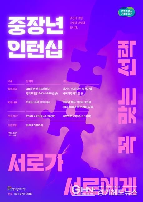 경기헤드뉴스 성미연 기자 | 경기도와 경기도일자리재단은 도내 중장년 구직자에게 일 경험을 제공하고, 기업에는 인건비를 지원하는 ‘중장년 인턴십 사업’ 참여자와 기업을 23일부터 모집한다. 올해는 총 730명의 중장년 도민이 사업에 참여할 수 있다.