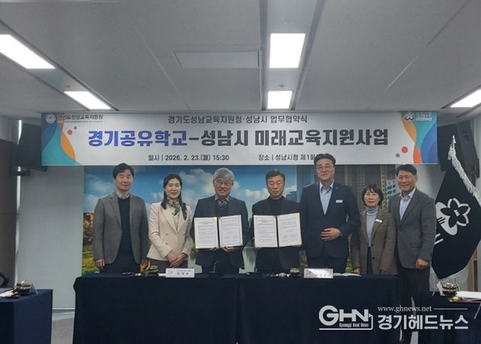 경기헤드뉴스 권준형 기자 | 경기도성남교육지원청은 2월 23일 성남시와 함께 지역 중심의 미래교육 생태계 조성을 위한 ‘지역교육협력을 위한 경기공유학교-성남시 미래교육지원사업 업무협약’을 체결하고, 2026년도 세부 사업 추진을 위한 부속합의를 완료했다고 밝혔다.