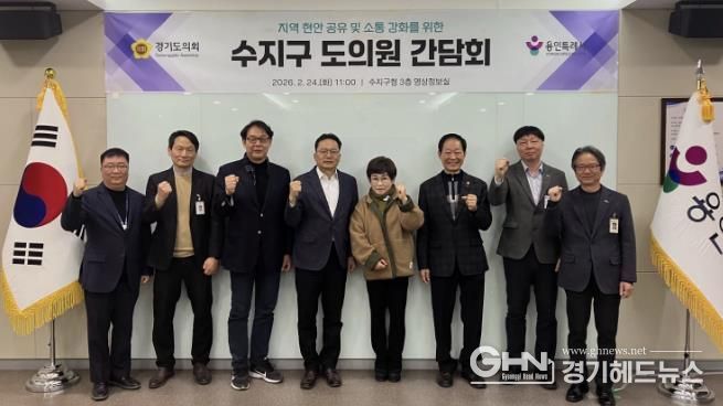 경기헤드뉴스 성미연 기자 | 용인특례시 수지구는 24일 구청 영상정보실에서 경기도의회 의원들과 간담회를 열고 지역 주요 현안과 특별조정교부금 사업 추진 현황을 공유했다고 25일 밝혔다.