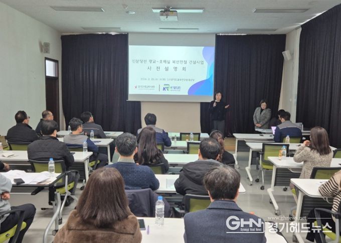 경기헤드뉴스 권준형 기자 | 경기도수원교육지원청은 신분당선 광교–호매실 복선전철 공사 추진에 앞서 2월 25일 국가철도공단과 함께 공사 구간 100m 이내에 위치한 5개 인접학교를 대상으로 사전설명회를 실시했다고 밝혔다.