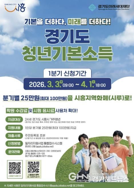 경기헤드뉴스 임채헌 기자 | 시흥시는 청년의 사회적 기본권 보장과 지역경제 활성화를 위해 4월 1일까지 ‘2026년 1분기 청년기본소득’ 지급 신청을 받는다.