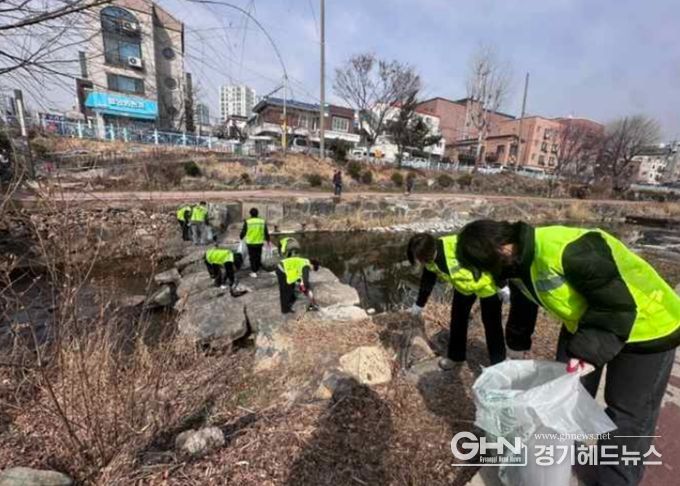 경기헤드뉴스 권준형 기자 | 수원특례시가 봄을 맞아 5일 수원천 산책로와 제방 일원에서 하천을 정비했다.