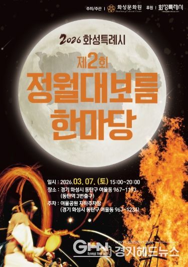 경기헤드뉴스 임수연 기자 | ‘2026년 화성특례시 제2회 정월대보름 한마당’이 오는 3월 7일 오후 3시부터 8시까지 동탄역 3번 출구 앞 광장에서 열린다.