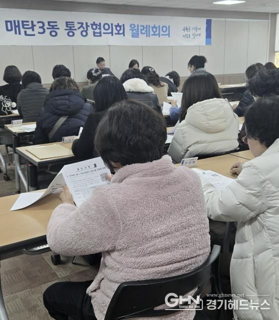 경기헤드뉴스 권준형 기자 | 수원시 영통구 매탄3동은 지난 10일 시정 및 동정 소식 공유를 위한 3월 1차 통장협의회 월례회의를 개최했다.