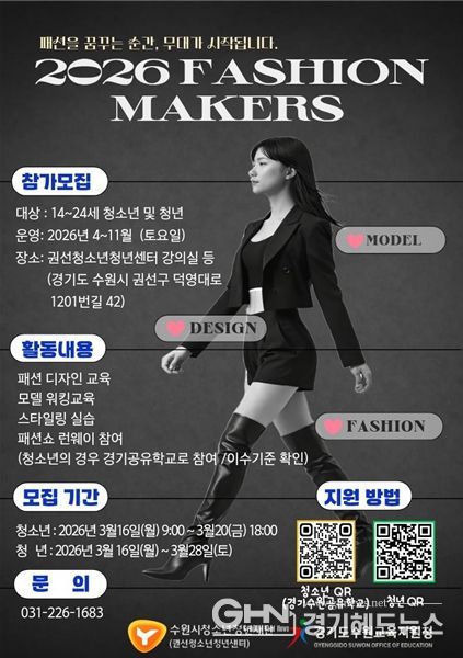 경기헤드뉴스 권준형 기자 | 수원시청소년청년재단 권선청소년청년센터는 패션 분야 진로에 관심 있는 청소년과 청년을 대상으로 ‘패션메이커스(Fashion Makers)’ 프로그램 참가자를 모집한다.