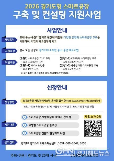경기헤드뉴스 권준형 기자 | 수원특례시가 경기도와 함께 ‘2026년 경기도형 스마트공장 구축 및 컨설팅 지원사업’ 참여 기업을 공모한다. 경기도 22개 시군 소재 중소제조기업을 지원하는데, 수원시 기업은 4개사를 선정할 예정이다.