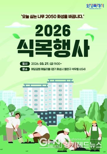 경기헤드뉴스 임수연 기자 | 화성특례시가 제81회 식목일을 기념해 3월 27일 오전 11시 예당공원 동탄패밀리풀에서 ‘2026년 식목행사’를 연다. 이번 행사는 ‘오늘 심는 나무 2050 화성을 바꿉니다’를 주제로 탄소중립 녹색성장 도시 기반을 다지기 위해 마련됐다.