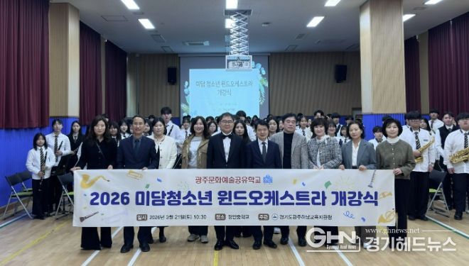 경기헤드뉴스 권민성 기자 | 경기도광주하남교육지원청은 3월 21일 경안중학교 어울림홀에서 ‘2026학년도 광주미담공유학교’의 시작을 알리는 ‘미담 청소년 윈드오케스트라’ 개강식을 개최했다.