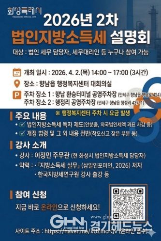 경기헤드뉴스 임수연 기자 | 화성특례시 만세구청이 지난 1차 설명회의 뜨거운 관심에 힘입어, 오는 4월 2일 오후 2시 향남읍 행정복지센터에서 ‘2차 법인지방소득세 설명회’를 개최한다.