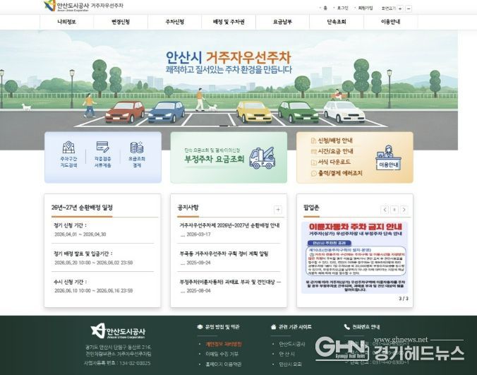 경기헤드뉴스 임채헌 기자 | 안산도시공사는 거주자우선주차장 운영 서비스를 전면 개편하고, 내달 1일부터 한 달간 ‘2026년 순환배정’ 신청을 접수한다고 24일 밝혔다.