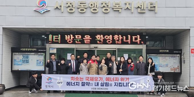 경기헤드뉴스 이현규 기자 | 평택시 서정동 행정복지센터는 지난 24일 서정동 9개단체협의회, 서정동 바르게살기위원회 회원, 행정복지센터 직원 등 약 20명이 참여해 최근 중동 지역 긴장 고조에 따른 에너지 수급 불안에 대비하여 에너지 절약 분위기 확산을 위한 에너지 절약 캠페인을 실시했다.