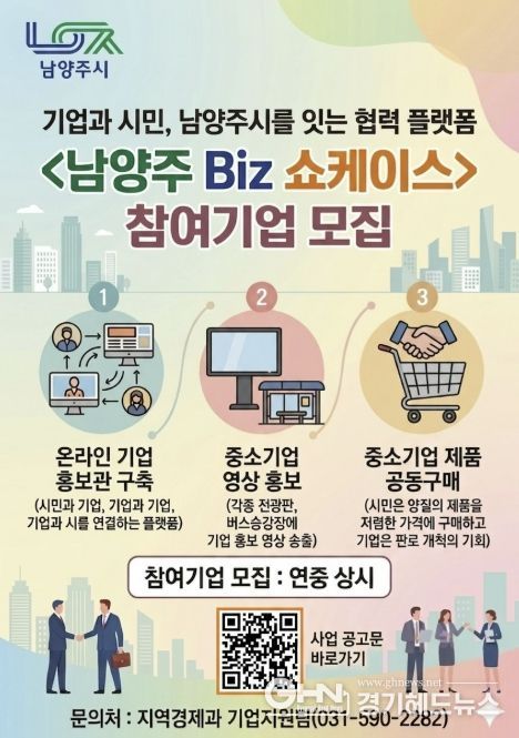 ‘남양주 Biz 쇼케이스’는 △온라인 기업홍보관 운영 △영상 홍보 지원으로 구성된다.