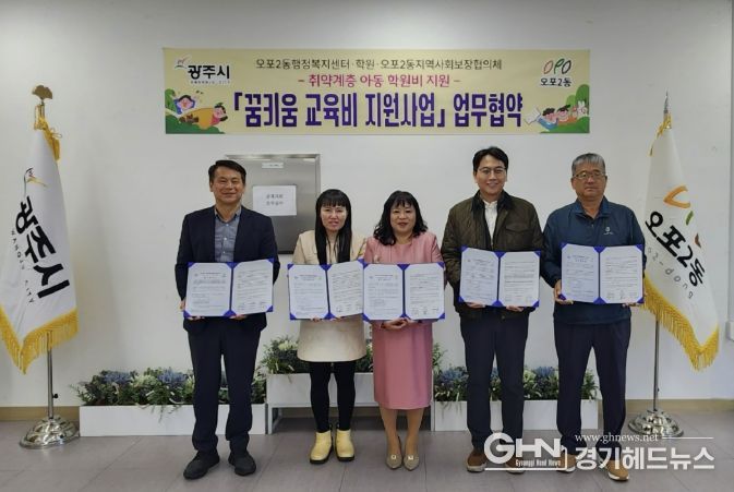 오포2동 지역사회보장협의체는 지난달 31일 취약계층 아동의 교육 격차 해소를 위해 지역 내 학원과 ‘꿈 키움 교육지원 사업’ 업무 협약식을 맺었다.