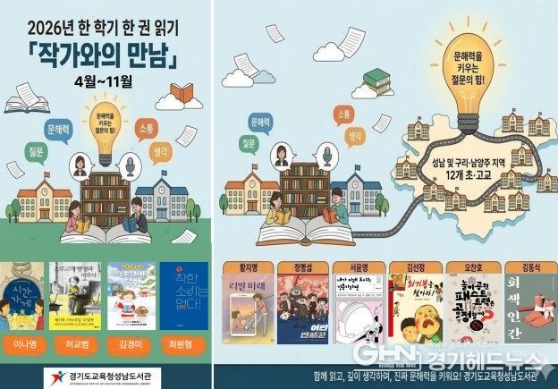 경기헤드뉴스 권준형 기자 | 경기도교육청성남도서관이 성남과 구리·남양주 지역의 12개 초등학교 및 고등학교 학생들의 기초 문해력 향상과 깊이 있는 독서경험을 위해 ‘2026년 작가와의 만남’을 운영한다.