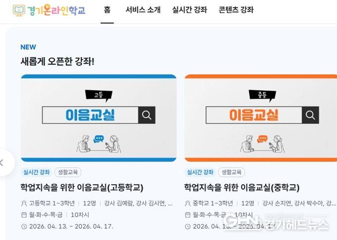 경기헤드뉴스 성미연 기자 | 경기도교육청이 오는 13일부터 10월 19일까지 학업 중단 위기 학생의 학업 복귀를 지원하는‘경기온라인학교 이음교실’을 확대 운영한다.