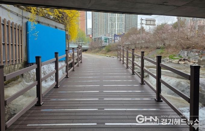 구는 성복천 배수통문을 정비하고, 산책로와 자전거도로도 함께 정비해 보행 환경과 이용 안전성을 개선했다.