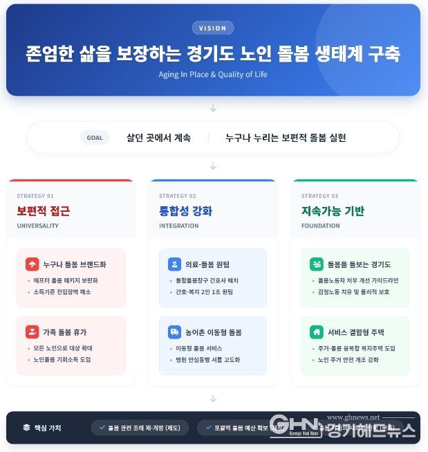 경기헤드뉴스 성미연 기자 | 경기연구원이 빠르게 늘어나는 노인 인구에 대응해 ‘돌봄 생태계’ 구축을 핵심 해법으로 제시했다. 단순히 시설을 늘리는 방식이 아니라, 노인이 살던 집과 지역에서 계속 살아갈 수 있도록 다양한 돌봄 주체가 연결되는 새로운 시스템이다.
