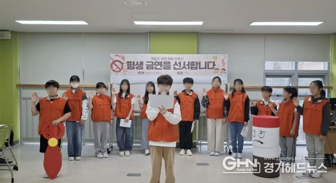 경기헤드뉴스 권민성 기자 | 역동초등학교는 4월 14일부터 17일까지 전교생을 대상으로 평생 금연 선포식과 흡연 예방 체험활동을 운영했다.