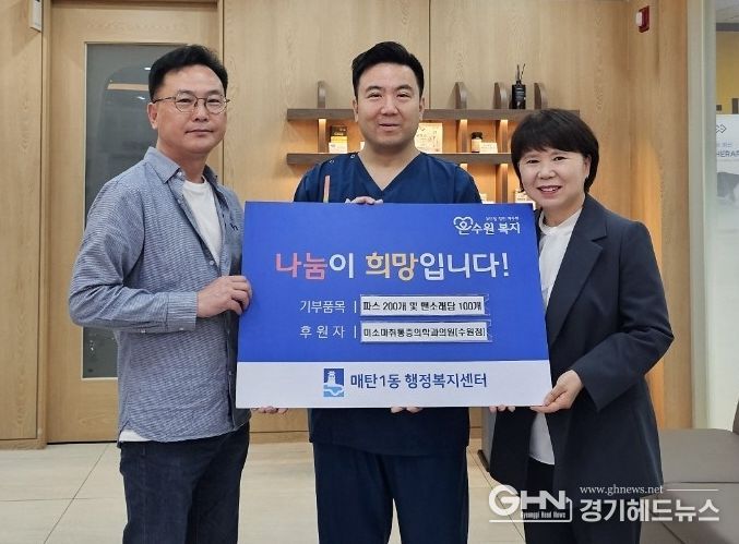 김은정 매탄1동장은 “지역 주민들을 위해 따뜻한 나눔을 실천해주신 미소마취통증의학과의원에 깊이 감사드린다”며 “후원해주신 물품은 꼭 필요한 이웃들에게 소중히 전달하겠다”고 전했다.