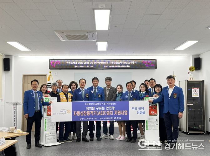 경기헤드뉴스 권민성 기자 | 국제로타리 3600지구 2025-26 광주지역협의회는 지난 17일 광주시자원봉사센터 4층 교육장에서 자동심장충격기 기증식을 개최하고 500만 원 상당의 장비 2대를 전달했다.
