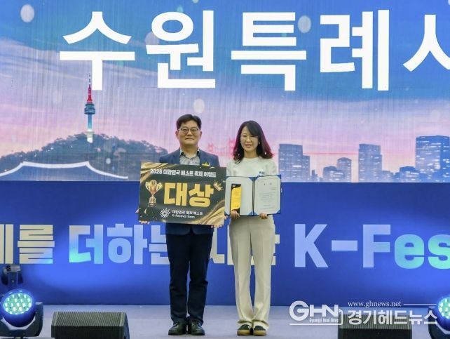 시상식에 참석한 선은임 수원시 문화관광체육국장은 “대한민국 축제 엑스포에서 수원의 축제 역량을 인정받고, 대상을 받게 돼 기쁘다”며 “앞으로도 차별화된 콘텐츠로 글로벌 축제 도시로서 위상을 높여 나가겠다”고 밝혔다.