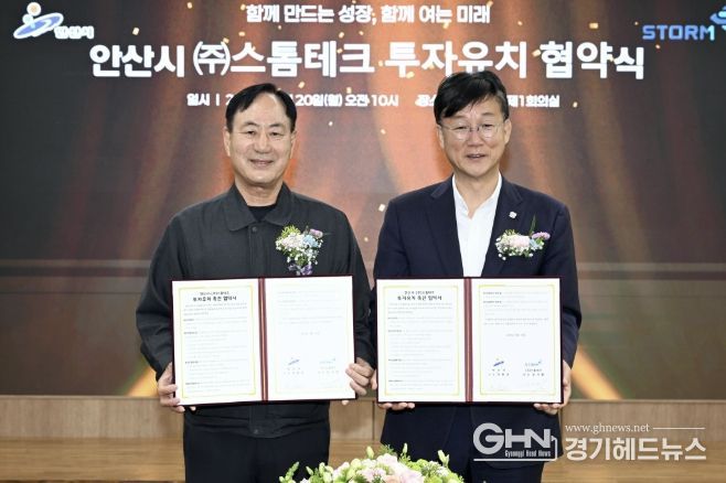 경기헤드뉴스 임채헌 기자 | 안산시는 지난 20일 코스닥 상장기업 ㈜스톰테크와 제2공장 신축 및 투자 확대를 위한 협약을 체결했다고 21일 밝혔다.