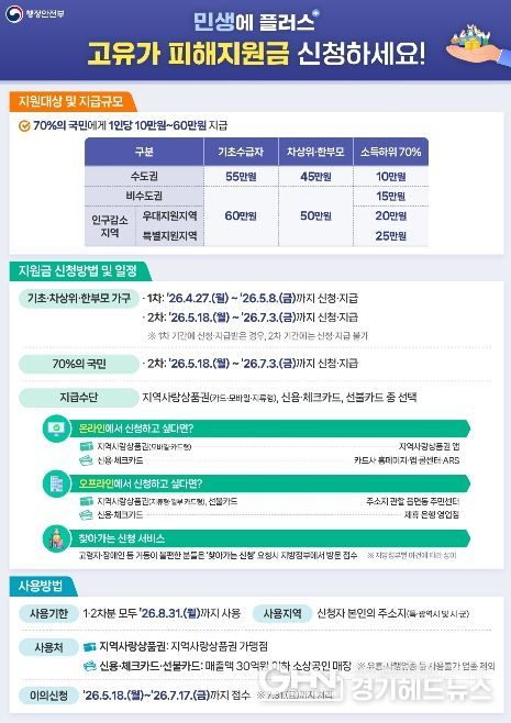 또한, 지원금은 연 매출 30억 원 이하의 지역 내 소상공인 가맹점에서 사용할 수 있어 고물가로 위축된 지역 골목상권 활성화에도 기여할 것으로도 기대된다.