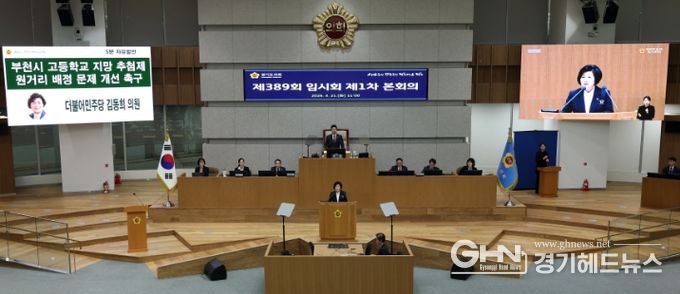 경기헤드뉴스 성미연 기자 | 경기도의회 여성가족평생교육위원회 김동희 부위원장(더불어민주당, 부천6)은 제389회 경기도의회 임시회 제1차 본회의 5분 자유발언을 통해 부천시 고등학교 지망 추첨제 운영 과정에서 발생하고 있는 원거리 배정 문제를 지적하고 제도 개선을 강력히 촉구했다.