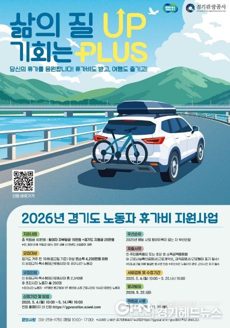 경기헤드뉴스 성미연 기자 | 경기도가 경제적 부담으로 휴식을 포기했던 비정규직과 특수형태근로종사자에게 휴가비를 지원하는 ‘취약노동자 휴가비 지원사업’ 참여자를 5월 4일부터 14일까지 모집한다.