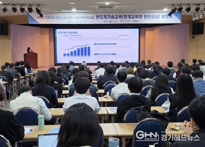 경기헤드뉴스 성미연 기자 | 경기도교육청이 22일 경기도경제과학진흥원에서 한국나노기술원과 함께 도내 직업계고 학생의 나노·반도체 분야 인재 육성을 위한 ‘2026 나노융합기술인력 양성사업 및 취업 지원’ 공동설명회를 개최했다.
