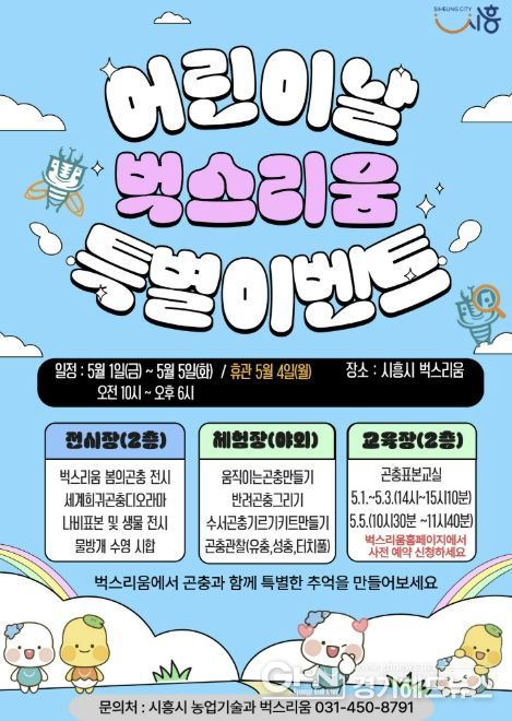경기헤드뉴스 임채헌 기자 | 시흥시 곤충체험전시관 ‘벅스리움’은 어린이날을 맞아 아동과 가족이 함께 즐길 수 있는 ‘특별 프로그램’을 오는 5월 1일부터 5일까지 운영한다.
