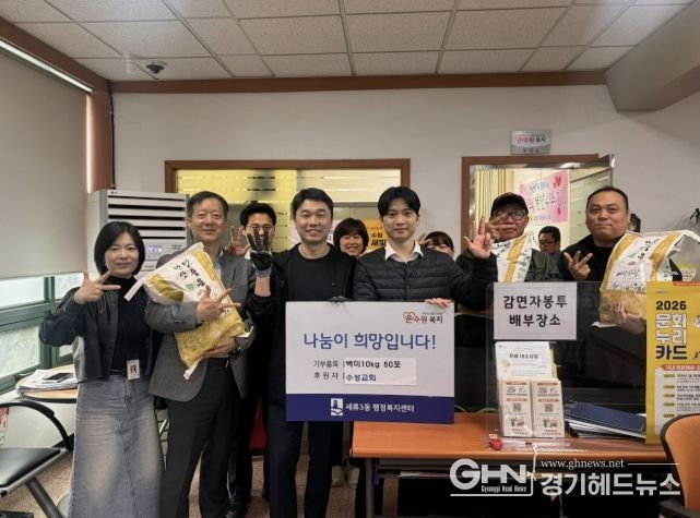 경기헤드뉴스 권준형 기자 | 수원시 권선구 소재 수성교회는 세류3동행정복지센터에 쌀 50포를 기부하며, 지역 내 어려운 이웃을 위한 따뜻한 나눔을 실천했다.