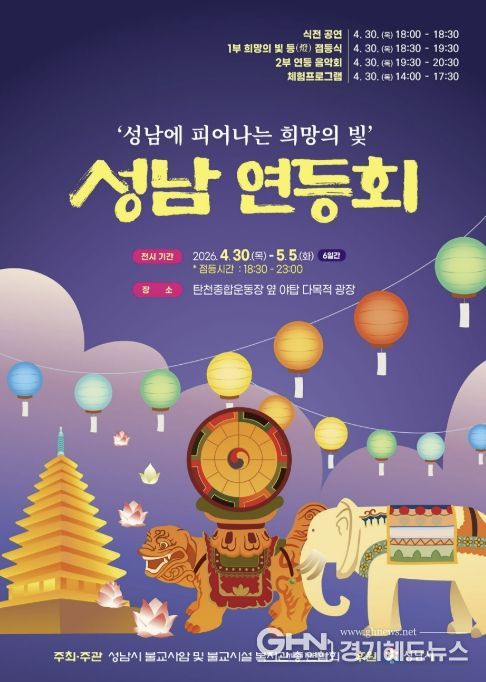 경기헤드뉴스 권준형 기자 | ‘2026 성남 연등회’가 오는 4월 30일부터 5월 5일까지 엿새간 분당 탄천 야탑 다목적광장(탄천종합운동장 앞)에서 열린다.
