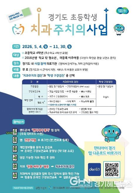 경기헤드뉴스 성미연 기자 | 경기도가 4일부터 초등학교 4학년생 11만명을 대상으로 예방 중심의 구강 관리 서비스를 제공하는 ‘2026년 초등학생 치과주치의 사업’을 시행한다.