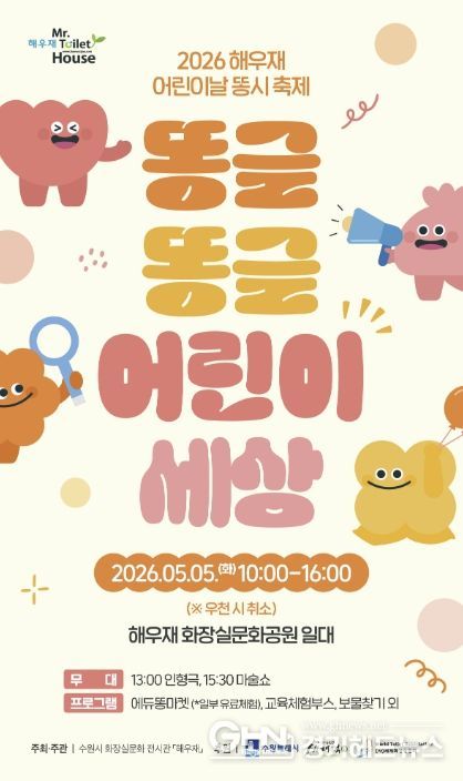 경기헤드뉴스 권준형 기자 | ‘2026 해우재 어린이날 똥시 축제-똥글똥글 어린이 세상’이 5월 5일 오전 10시부터 오후 4시까지 해우재 화장실문화공원 일원에서 열린다.