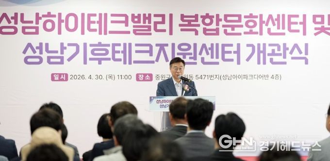 경기헤드뉴스 권준형 기자 | 성남시가 산업단지 내 공공지원 기능을 강화하고 근로자 복지 증진과 기후테크 산업 육성을 위해 조성한 ‘성남하이테크밸리 복합문화센터’와 ‘성남 기후테크지원센터’가 4월 30일 오전 11시 개관식을 열고 본격적인 운영에 들어갔다.