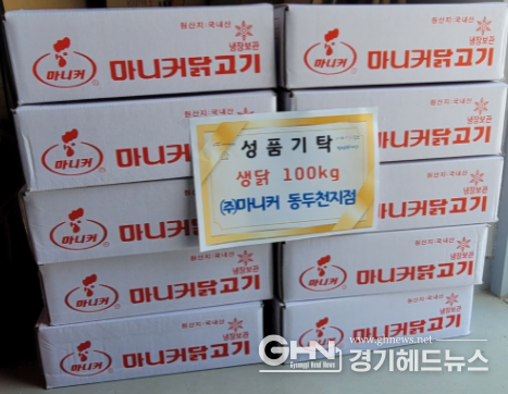 경기헤드뉴스 임채헌 기자 | ㈜마니커 동두천지점에서는 지난 9일 소요동 행정복지센터에 저소득 취약계층 밑반찬 지원을 위한 생닭 100kg을 기탁했다.
