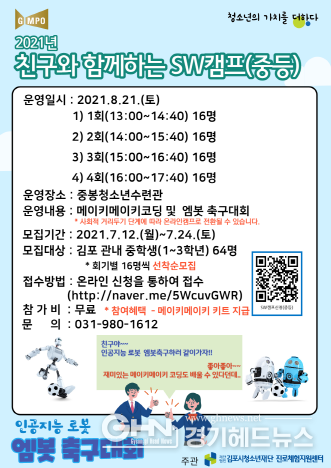 경기헤드뉴스 임채헌 기자 | 김포시청소년재단 진로체험지원센터는 오는 8월 21일(토) 중학생(1~3학년)대상 SW캠프를 실시할 예정이다.