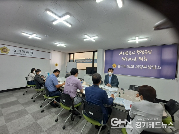 경기헤드뉴스 임채헌 기자 | 경기도의회 기획재정위원회 이영봉(더민주, 의정부2) 도의원은 지난 9일 경기도의회 의정부상담소에서 경기도의정부교육지원청 관계자를 만나 그린스마트 미래학교 사업 진행 현황과 회룡초 체육관 증축 관련 업무보고를 받는 자리를 가졌다.